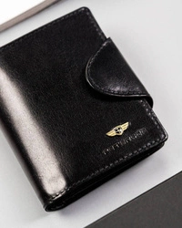 Skórzany portfel damski na zatrzask i suwak czarny - Peterson KA-24