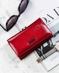 Skórzany czerwony portfel damski zamykany na zatrzask - Rovicky CPR-121-BAR