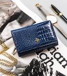 Portfel damski granatowy ze skóry ekologicznej zamykany na zatrzask — Milano Design SF-1077-JM