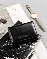 Skórzany portfel damski czarny zapinany na zatrzask RFID — Peterson RD-26-GCL BL