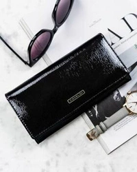 Skórzany lakierowany czarny duży portfel damski na zatrzask - 4U Cavaldi H27-1-SH9
