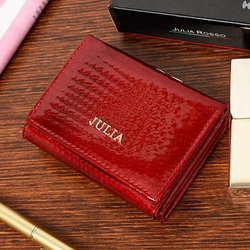Skórzany mały portfel damski lakierowany czerwony RFID - Julia Rosso F60