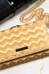 Skórzany portfel damski złoty na bigiel i zatrzask ze wzorem fal - Lorenti 55020-WAV