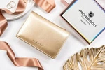 Mały złoty portfel damski z zapięciem ze skóry ekologicznej - Peterson 014-HRH