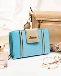 Skórzany portfel damski na zatrzask i suwak błękitny - Peterson KA-28