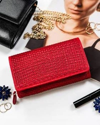 Skórzany portfel damski zamykany na zatrzask czerwony - Rovicky R-613-DDW