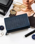 Elegancki granatowy portfel damski na karty - Rovicky R-615-DDW