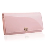 Skórzany portfel damski lakierowany na zamek ze smyczką czarny - Betlewski 1010804-BL