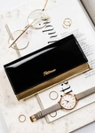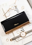 Skórzany portfel damski czarno-złoty z lakierowaną klapką - Peterson 1N-409