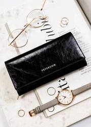 Skórzany portfel damski w czarnym kolorze zamykany na zatrzask - Peterson PL-409