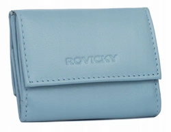Skórzany mały portfel damski na zatrzask błękitny - Rovicky R-19-LFN