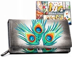 Skórzany portfel damski szary z portmonetką na bigiel - 4U Cavaldi RD-18-GCL