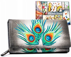 Duży skórzany portfel damski na zatrzask kolorowy - Rovicky R-N22-ART