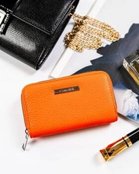 Portfel damski ze skóry ekologicznej na suwak pomarańczowy - 4U Cavaldi ABT-01-BL