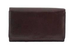 Skórzany portfel damski ciemnobrązowy z klapką na bigiel - Barberini's 8137-11