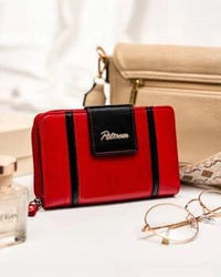 Skórzany portfel damski na zatrzask czerwono-czarny — Peterson KA-18
