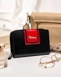Mały portfel damski ze skóry ekologicznej czarno-czerwony lakierowany — Peterson 003-LAK