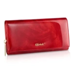 Skórzany portfel damski lakierowany na zamek ze smyczką czerwony - Betlewski 1010804-RED