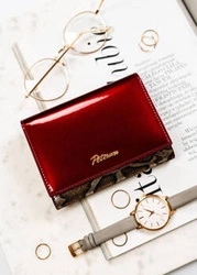 Skórzany czerwony portfel damski lakierowany na bigiel - Peterson CR-445