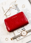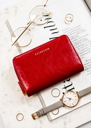 Skórzany portfel damski na zamek w kolorze krwistej czerwieni - Peterson PL-418