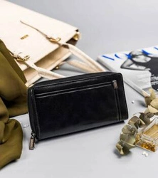 Skórzany portfel damski czarny na zatrzask dokumenty - Peterson RD-357-GCL-M