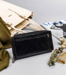 Duży skórzany portfel damski na zamek i zatrzask czarny - Rovicky CPR-8931-BAR
