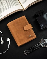 Skórzany portfel męski z zapięciem camel RFID — Peterson 317Z 2-1-5