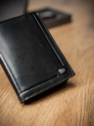 Skórzany pionowy portfel męski czarny ze skóry naturalnej Peterson PTN 317.01