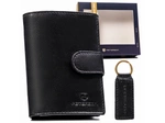 Zestaw prezentowy: skórzany czarny portfel męski i brelok — Peterson SET-M-N4-KCS