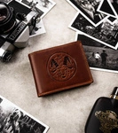 Duży skórzany portfel męski brązowy ze znakiem zodiaku ryby — Peterson N4-EBS