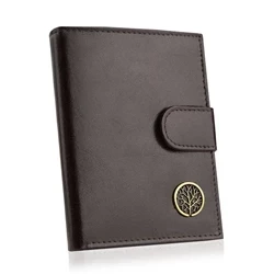 Elegancki skórzany portfel męski brązowy z zapięciem - Betlewski 9548-BR