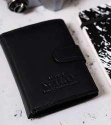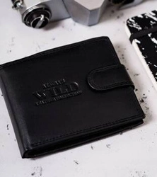 Skórzany portfel męski zapinany na zatrzask czarny - Rovicky RV-7680272-9-BCA