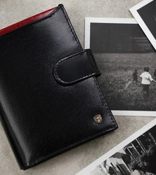 Skórzany portfel męski czarny na zatrzask — Peterson 22308L-VT-A