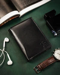 Skórzany klasyczny portfel męski na karty czarny - Barberini's H28-1