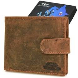 Skórzany portfel męski brązowy nubuk z zapięciem Beltimore R85