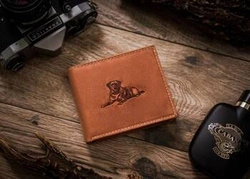 Duży skórzany portfel męski brązowy poziomy wzór z psem — Always Wild N992-CHM-DOG-1