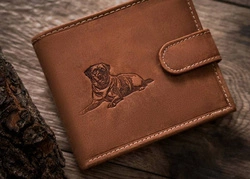 Duży skórzany portfel męski jasnobrązowy z buldogiem — Always Wild N4-CHM-DOG-2
