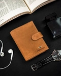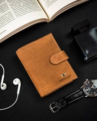 Skórzany portfel męski z zapięciem camel RFID — Peterson 317Z 2-1-5