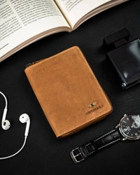 Skórzany portfel męski na suwak camel — Peterson 340 2-1-5