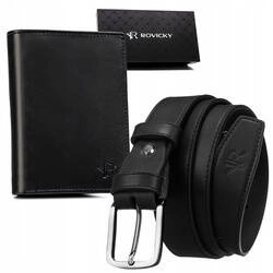 Zestaw prezentowy: portfel i pasek ze skóry ekologicznej czarny - Rovicky R-N004-110-PU03