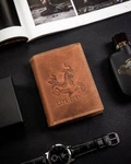 Skórzany duży pionowy portfel męski brązowy z wzorem rodeo - Always Wild N4-CHM