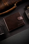 Skórzany portfel męski brązowy na dokumenty RFID - Rovicky PC-103-BAR