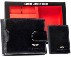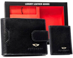 Zestaw prezentowy: skórzany portfel męski i brelok czarny - Rovicky R-SET-M-N003-GVT