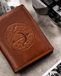 Skórzany portfel męski poziomy brązowy ze znakiem zodiaku strzelec — Peterson N992-EBS