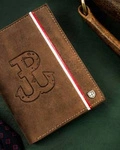 Skórzany portfel męski brązowy z motywem patriotycznym Peterson PTN 333PW