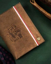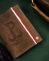 Skórzany portfel męski brązowy pionowy z motywem patriotycznym — Peterson PTN 333PW
