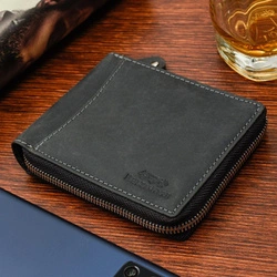 Skórzany portfel męski na zamek nubuk czarny RFID - Beltimore H01
