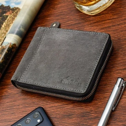 Skórzany portfel męski na zamek nubuk szary RFID - Beltimore H01