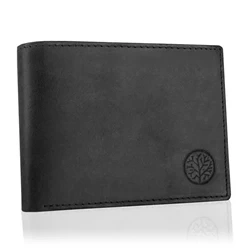 Skórzany portfel męski z kieszenią na monety czarny - Rovicky N02-RVT BL