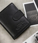 Klasyczny skórzany portfel męski na zatrzask czarny — Rovicky R-N4L-GAT